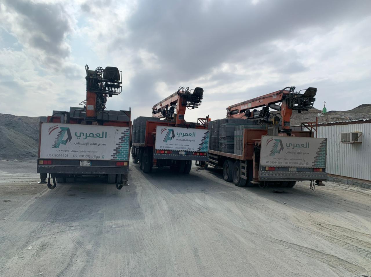 اسطول نقل حديث ومتكامل: يضم شاحنات متخصصة لنقل مختلف أنواع مواد البناء، بما في ذلك البلك، الخشب، والحديد.